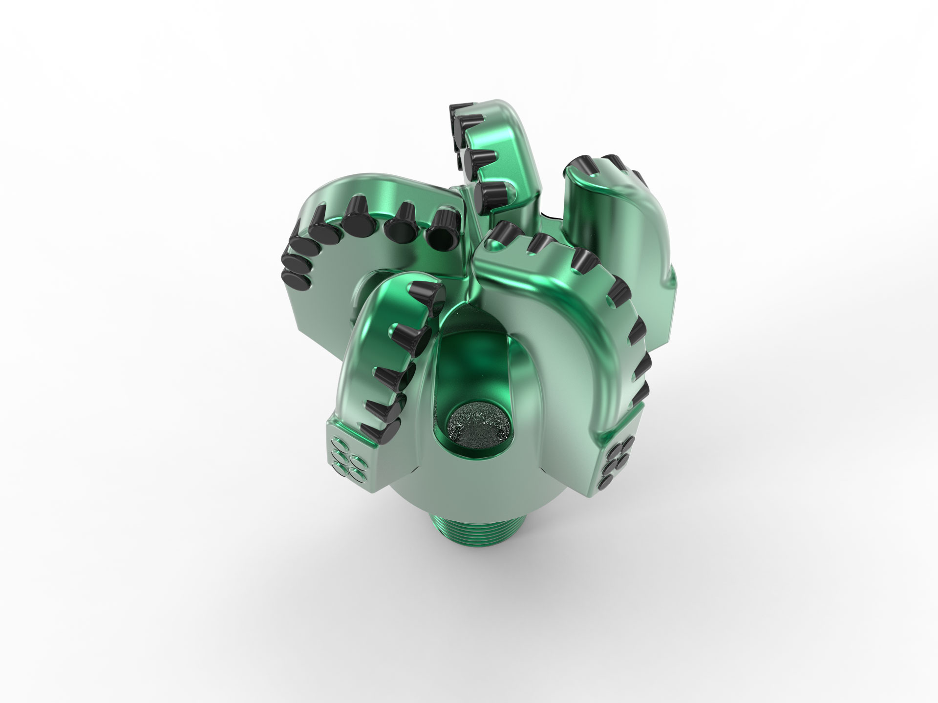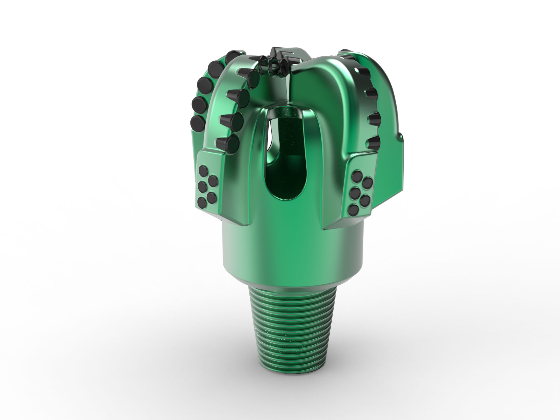 Full Flush PDC Bit предлагает более сильную гидравлику для более быстрого удаления черенков, уменьшения засорения и более плавных скважин. Оно уменьшает шипы вращающего момента, поддержки РОП в мягких образованиях, и увеличивает термальное регулирование-помощь расширяет жизнь бита.